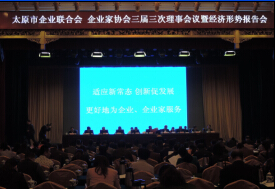 2015年4月23日太原市企業聯合會、企業家協會三屆三次理事會議暨經濟形式會在太原山西飯店順利召開,這次會議的主題是“適應新常態,創新促發展,更好地為企業、企業家服務”。